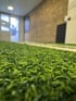 Ein lächelnder Mann in schwarzem T-Shirt und Trainingshose steht vor grünem Hintergrund.